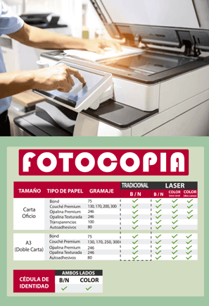 Fotocopias a color o en blanco y negro y en distintos papeles