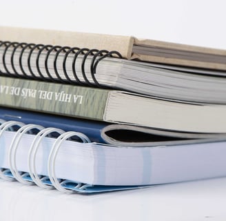 Anillado espiral, doble 0, corcheteado lomo, engomado, etc